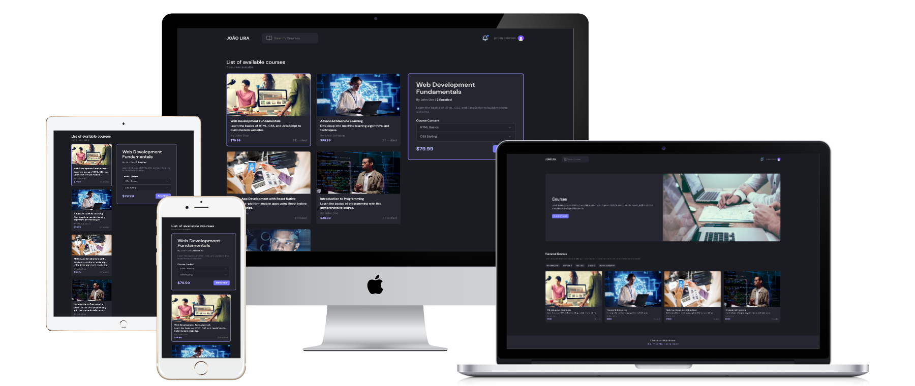 A learning management system that allows students to buy, access and view courses, and teachers to create their own courses with sections, chapters, in adittion to upload videoclasses. It features a user-friendly interface with course categories, detailed course descriptions, and a course player. It is built with NextJS for the frontend, styled using TailwindCSS, and integrates with a backend API for managing course data and user progress.