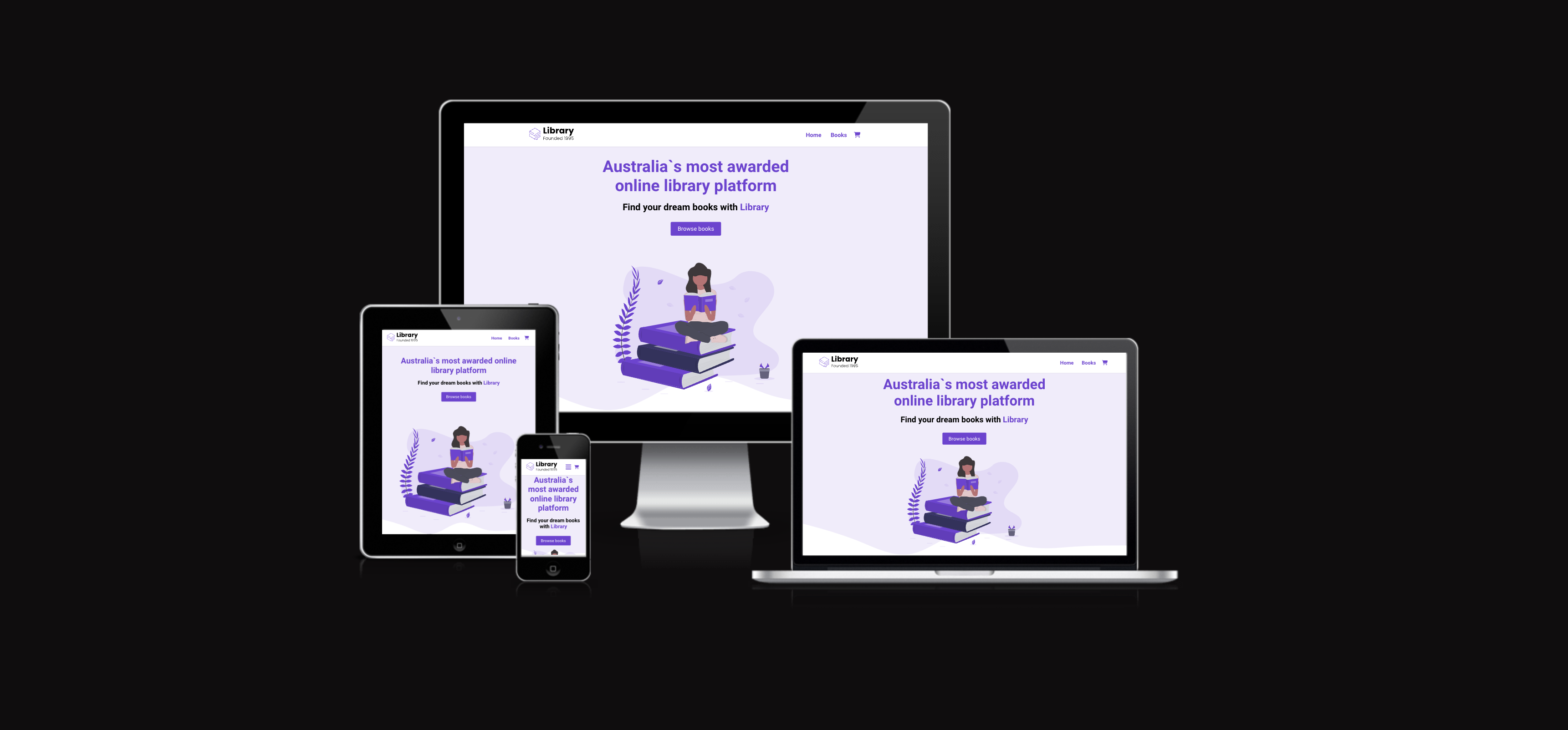 A responsive e-commerce library website that allows users to browse, search, and purchase (add to cart) books. The site features a user-friendly interface with book categories, detailed book descriptions, and a shopping cart. It is built with ReactJS for the frontend, styled using CSS, and integrates with a backend API for managing book data and orders.