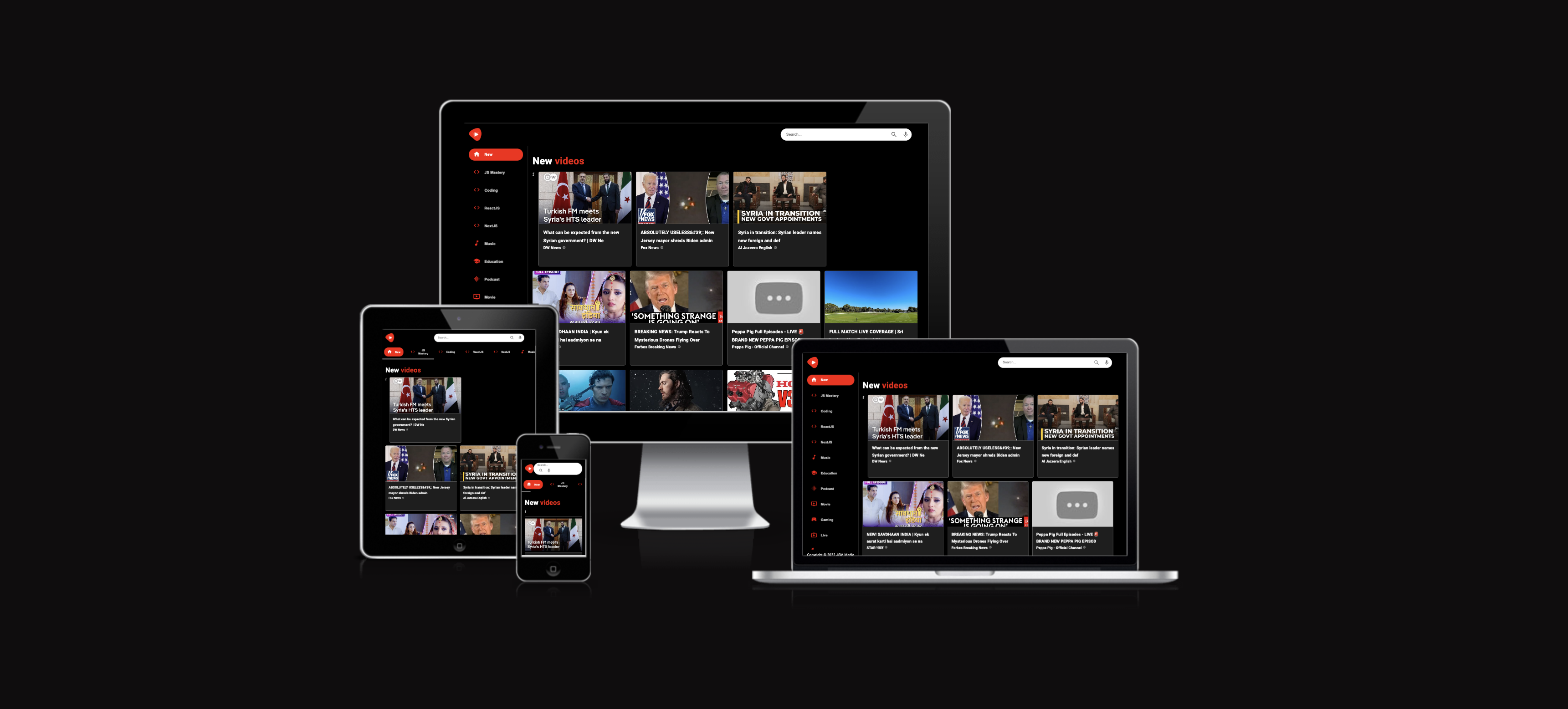 A responsive web application that mimics the core functionalities of YouTube. Users can search for videos with voice control or typing, view video details, and watch videos. The frontend is built with ReactJS and styled using MaterialUI, while the backend is powered by FastAPI to handle video data and user interactions.